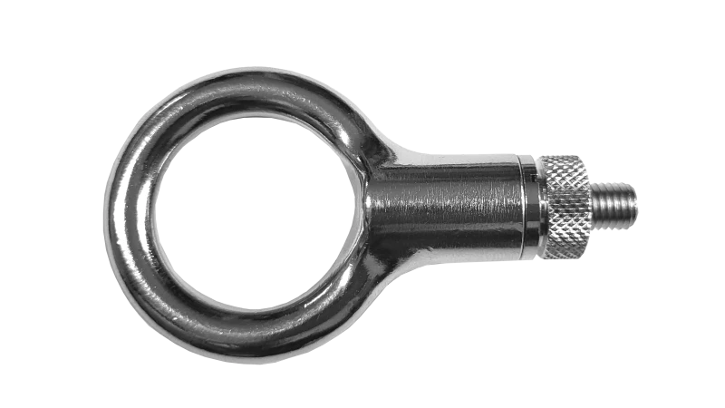 Atestowany stoper do lin 2 mm oraz 3 mm, niklowany. Blokowanie liny za pomocą nakrętki.