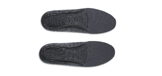 Wkładki do butów z pianki poliuretanowej, anatomicznie wyprofilowane, z grubszą częścią piętową dla lepszej amortyzacji.
